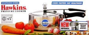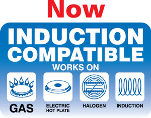 The body and lid are 100% stainless steel. To ensure uniform heating, the bottom has a core of 4.06 mm thick aluminium sandwiched between two sheets of stainless steel. The base always stays flat, never bulges.